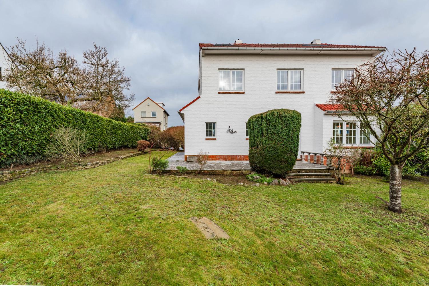 In the beautiful ‘Petite Suisse’ neighbourhood of Rhode, close to the railway station, a charming villa dating from 1960, tastefully renovated in 2021. Beautiful south-facing garden (land +/- 5 ares11). Living area +/- 235 m². Beautiful reception rooms, fully equipped kitchen, 5 bedrooms, 2 bathrooms. Garage. Peb C