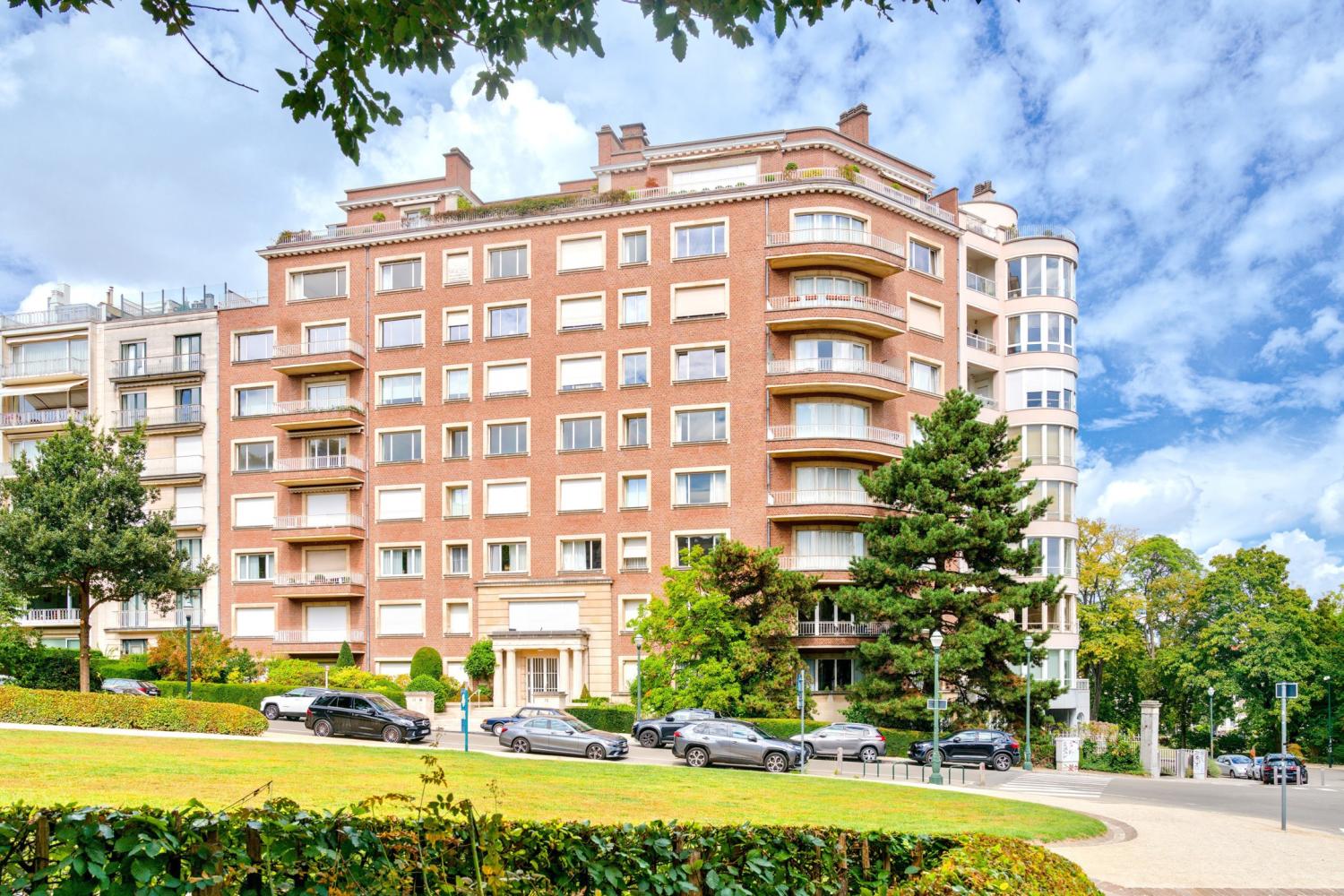 Dans un des plus élégant immeuble d'Ixelles en bordure du Jardin du Roy, au 7ème étage avec grande terrasse de +/- 50 m², superbe appartement de +/- 275 m² jouissant de vues extraordinaires et d'une orientation sud parfaite. Belles réceptions, cuisine équipée, 3 chambres, 2 salles de bain. Cave, cave à vin. Garage. PEB F